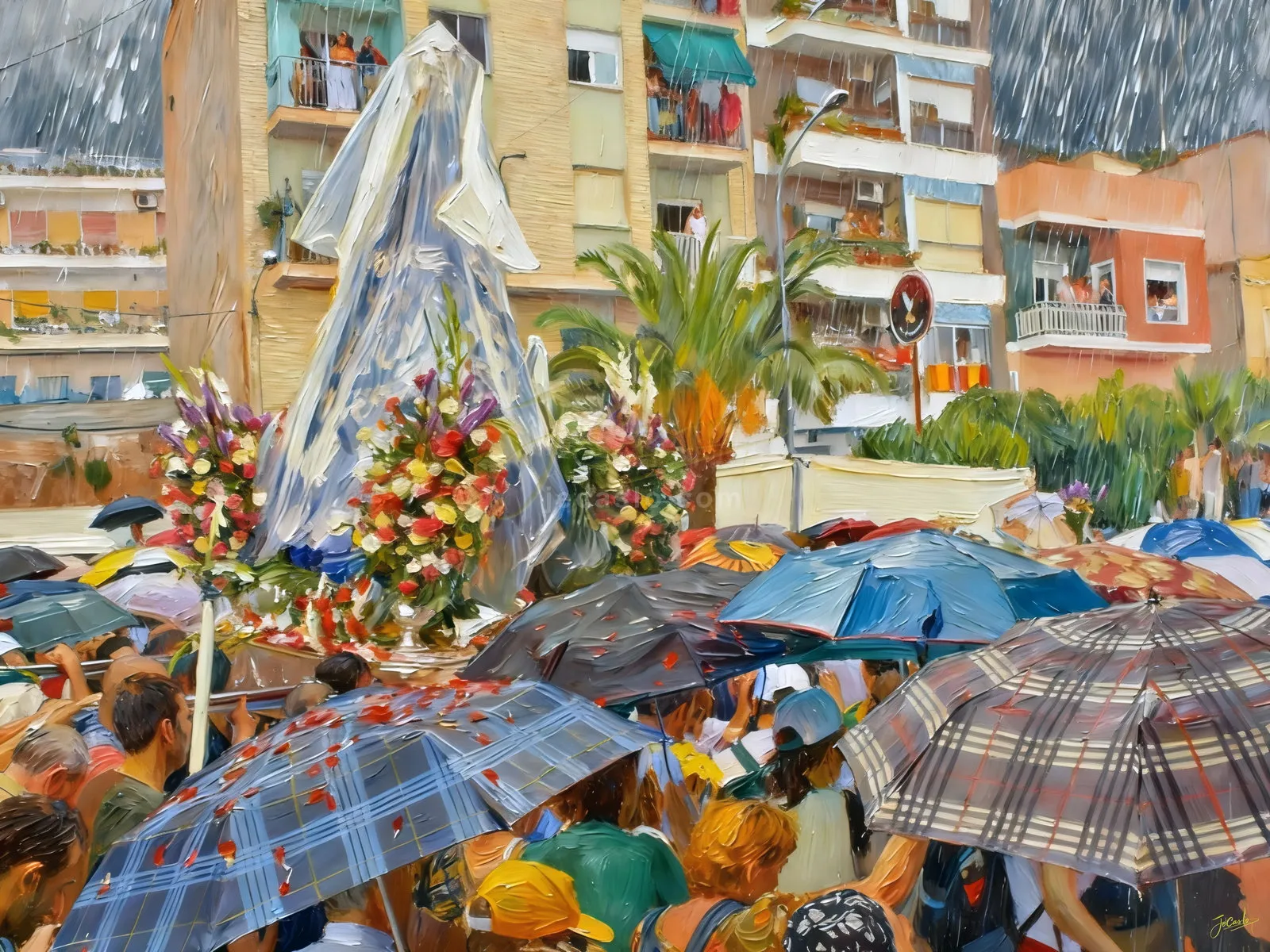 Un chaparrón torrencial cayó sobre miles de devotos.